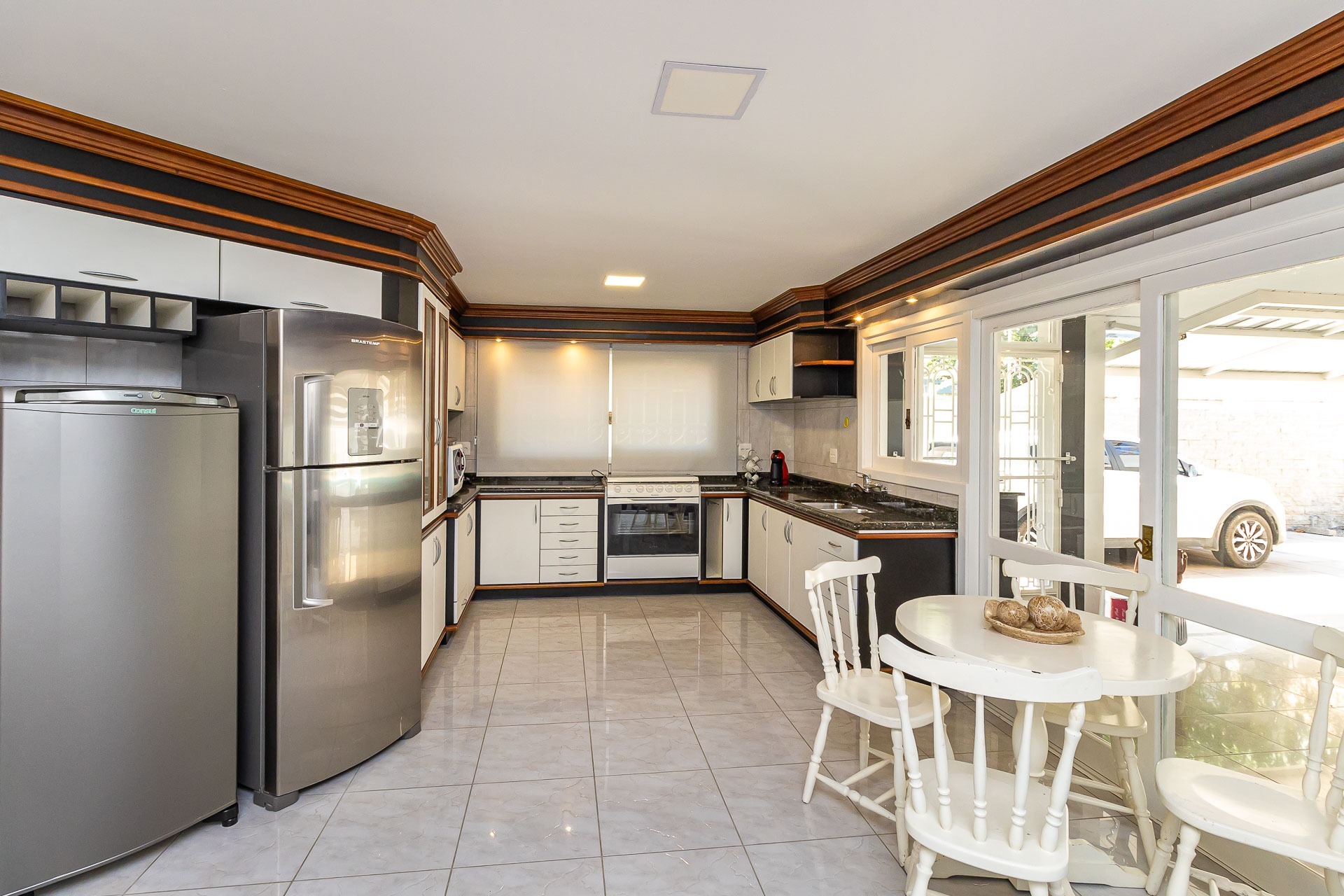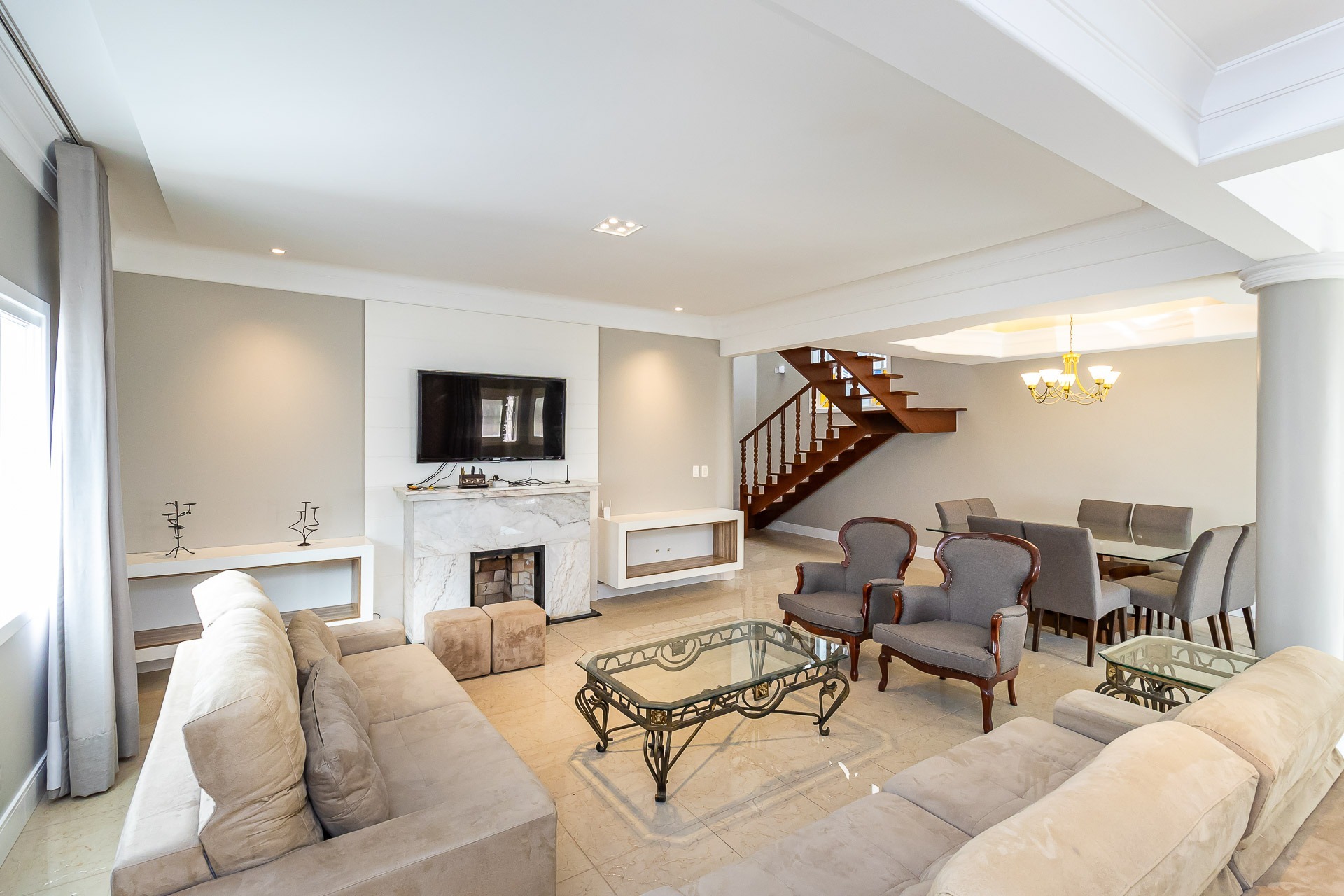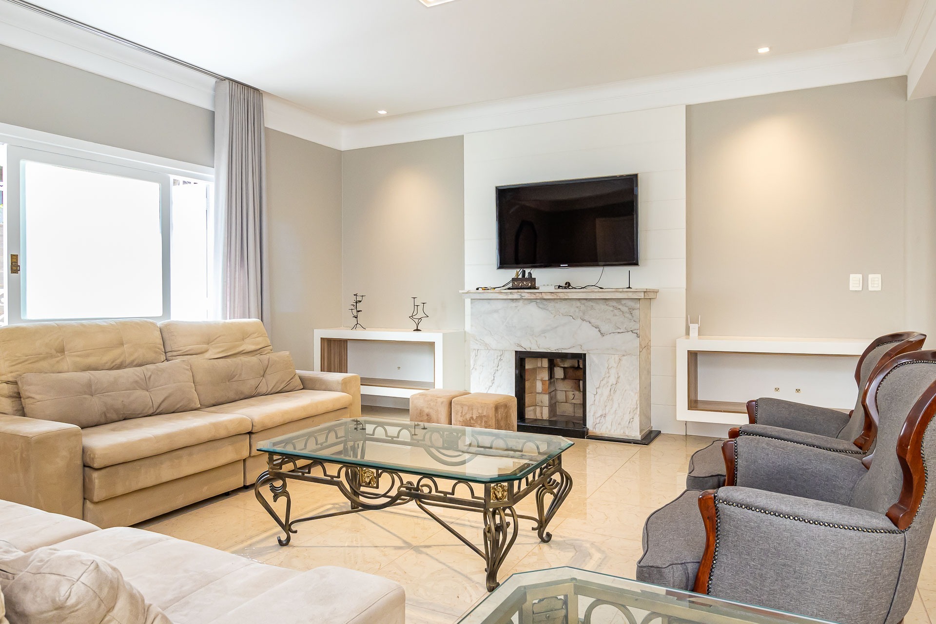 Esta residência, recentemente reformada com materiais de primeira linha, oferece o máximo em conforto e sofisticação. Localizada em um condomínio fechado, a casa dispõe de uma sala de estar aconchegante com lareira, grandes janelas que se abrem para o terraço, sala de jantar, lavabo, sala de TV e uma copa-cozinha equipada com lareira a gás. A área de serviço inclui lavanderia, suíte para caseiro c...