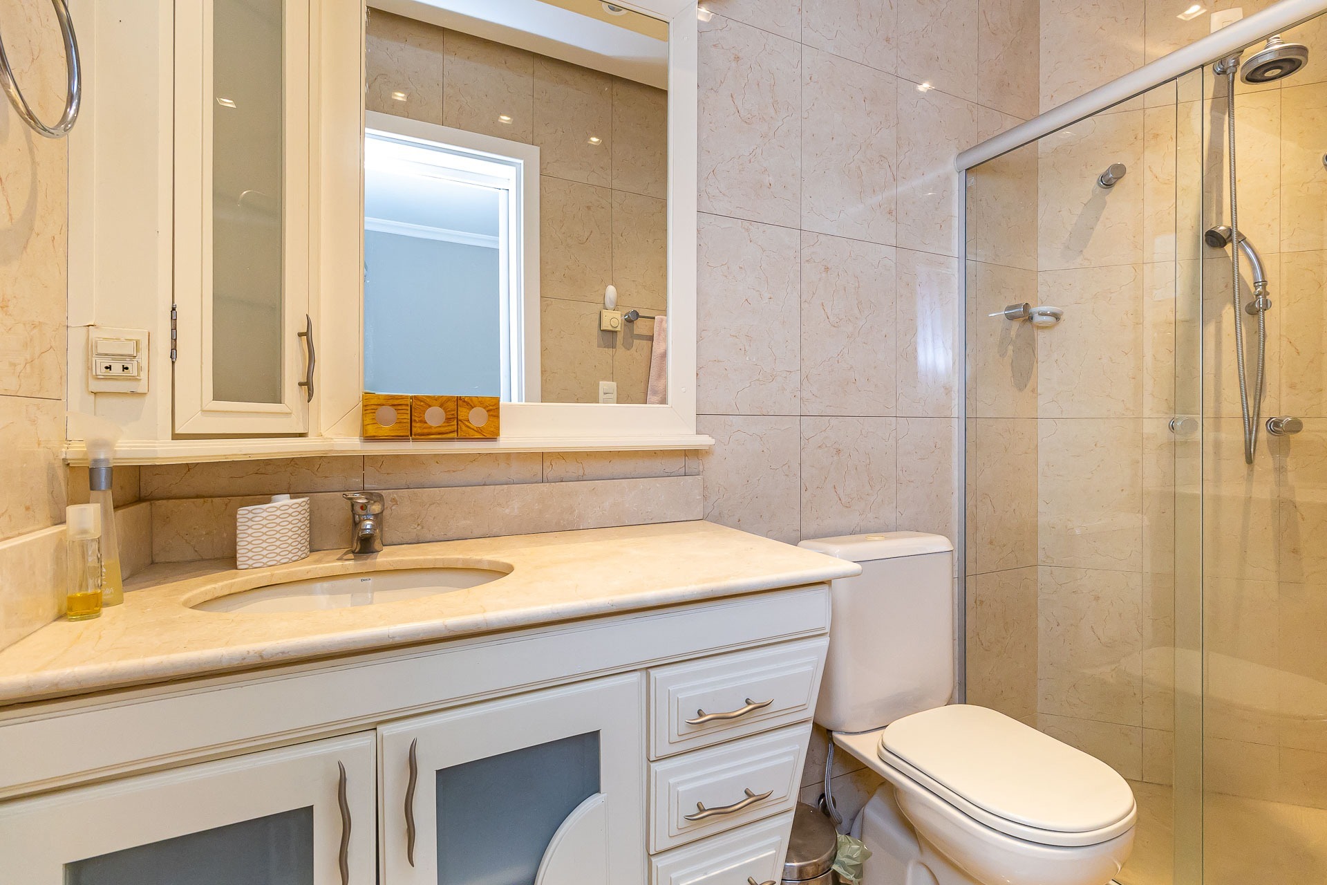 Apartamento reformado e mobiliado com 2 dormitórios tem 125m² de área privativa e 2 vagas de garagem coberta. Living com lareira detalhe que traz aconchego nos dias frios, lavabo cozinha estilo americana e área de serviço. Ampla sacada fechada com churrasqueira local de onde pode se contemplar uma linda vista para o bairro, dois dormitórios sendo 1 suíte e um terceiro que foi transformado em clos...