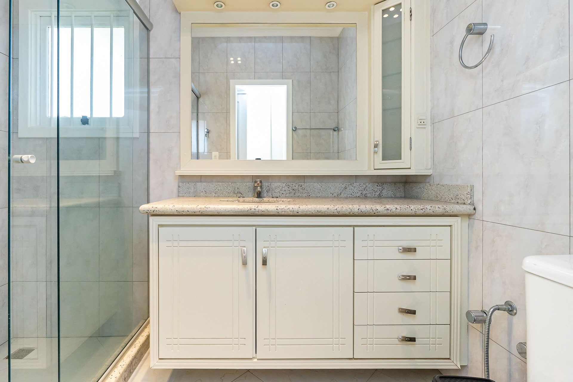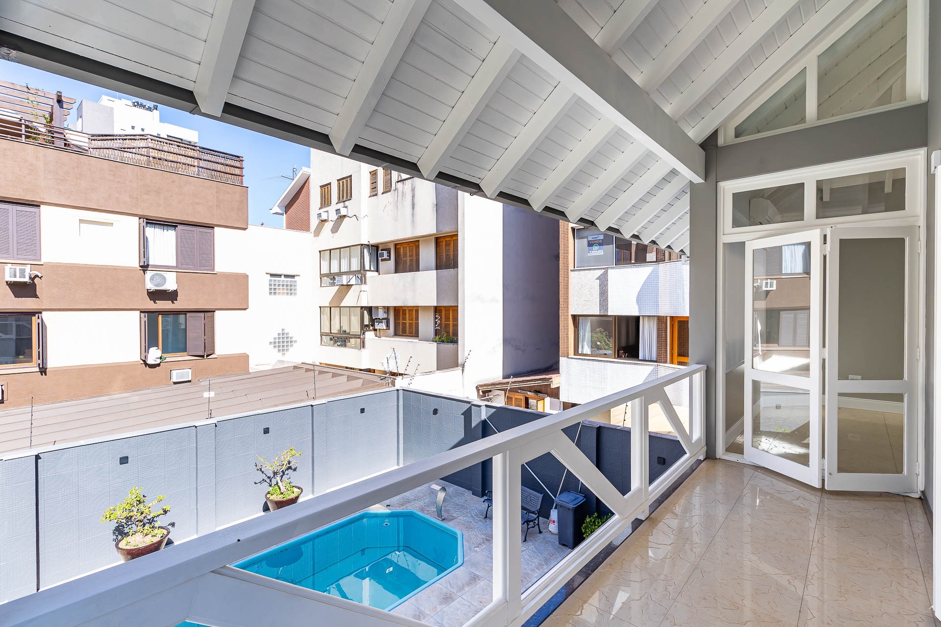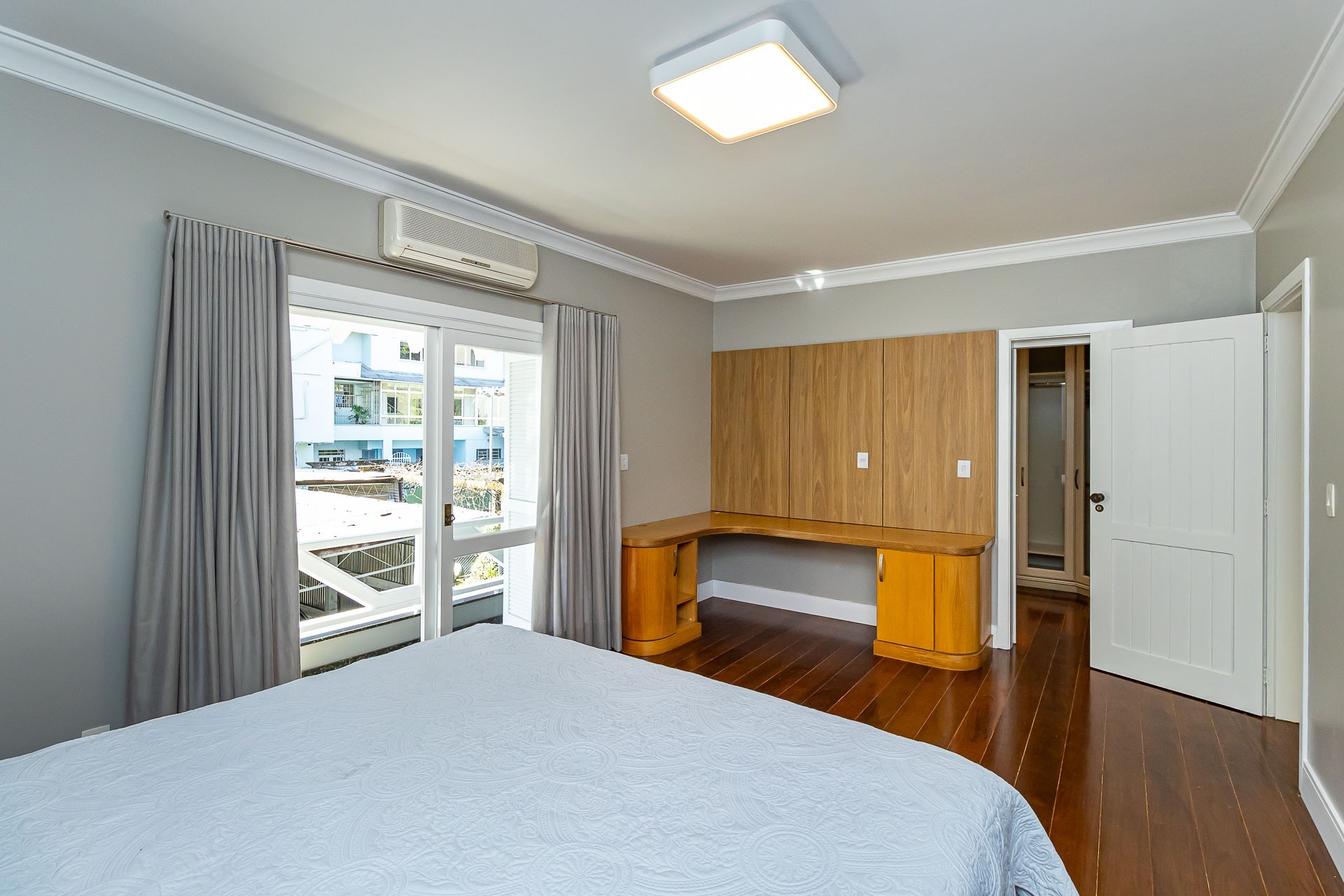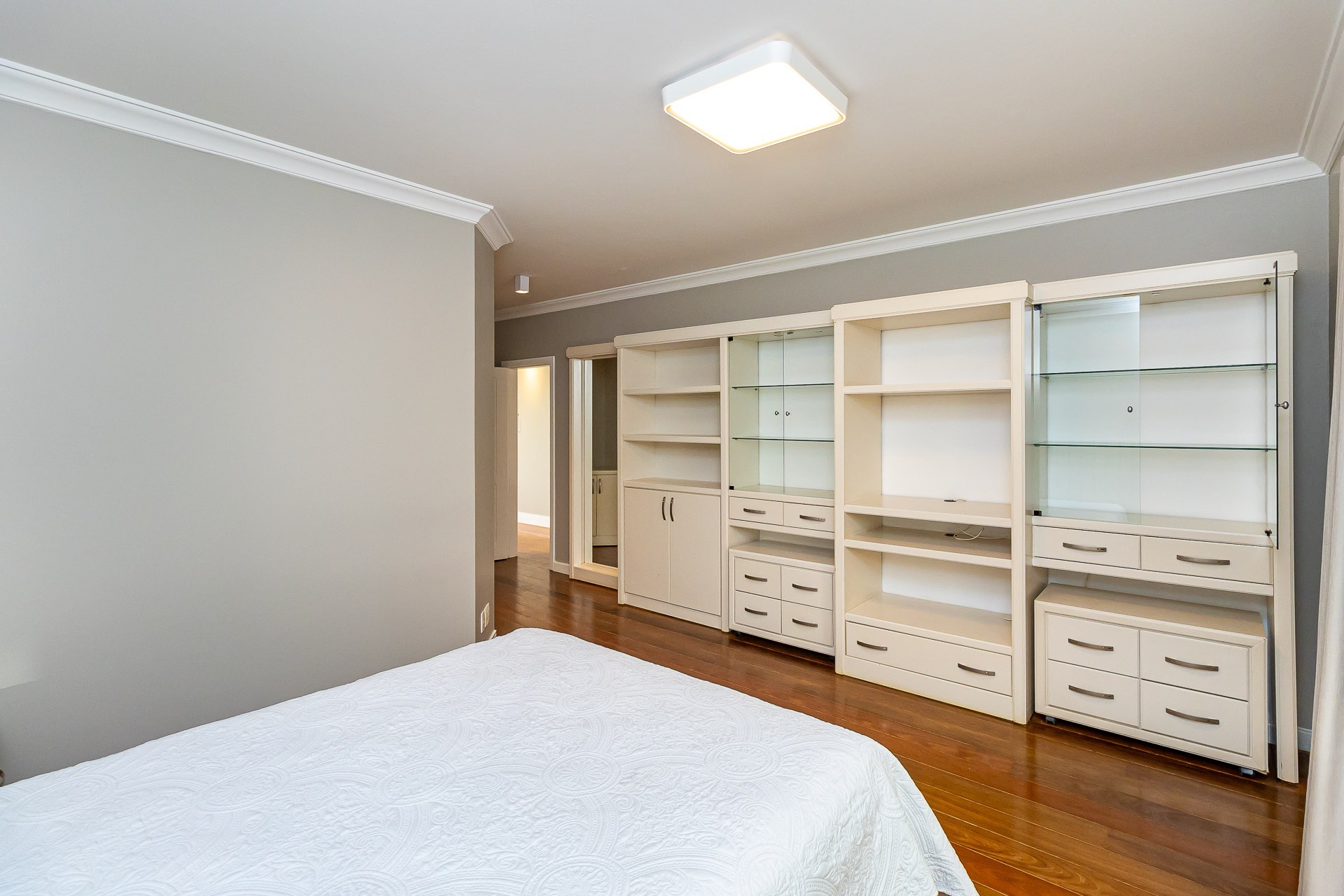 Apartamento para alugar mobiliado com 4 dormitórios, sendo 2 suítes, 179m de área privativa, living com ar condicionado, sacada fechada e ampla com churrasqueira, escrivaninha, cômodas, ventiladores de teto e cortinas, banheiro social com armários, cozinha completa com armários, fogão, geladeira, micro-ondas e coifa e área de serviço.