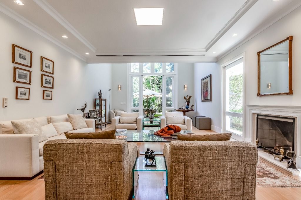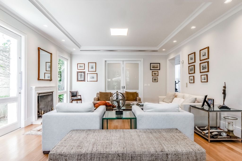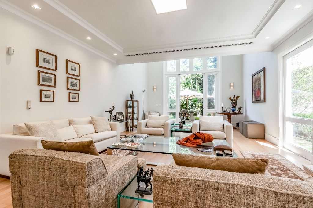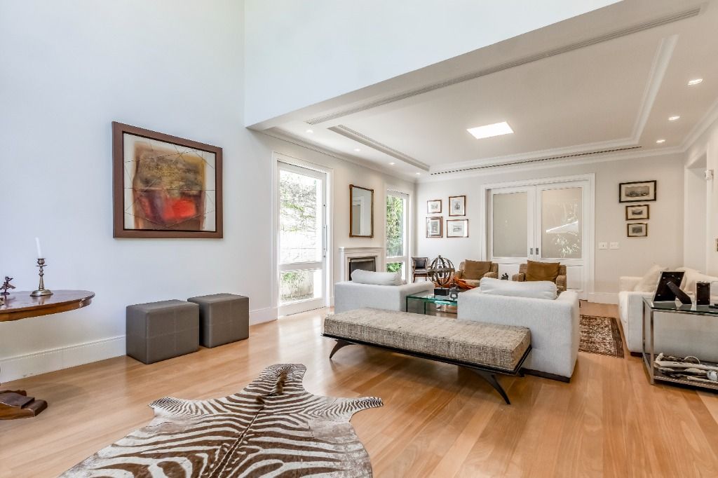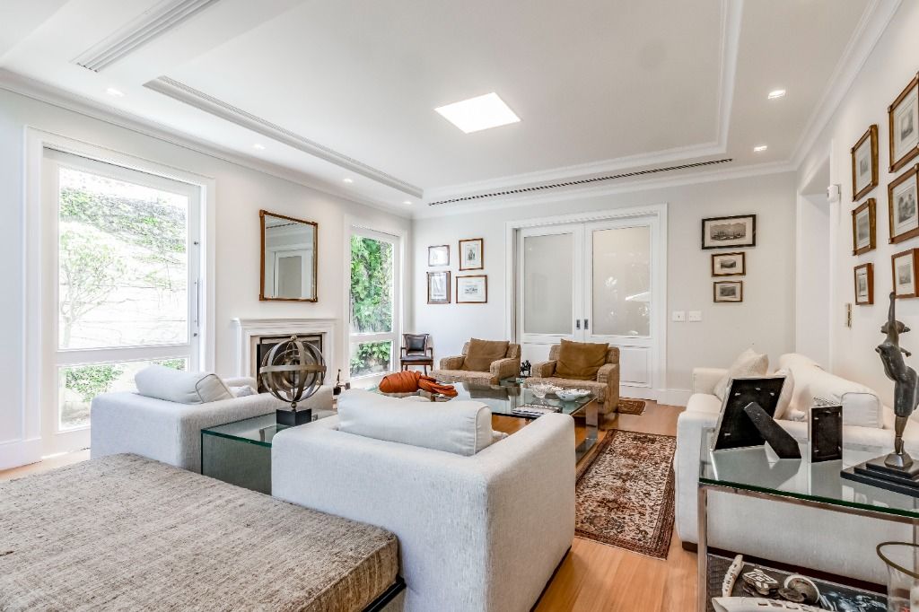 Casa PRONTA PARA MORAR!! Diferenciada, em altíssimo padrão, projetada pelos renomados arquitetos Israel Rewin e João Armentano. Em um terreno de 709 m², a casa de 1209 m² construídos, divide-se em 4 pavimentos. Superior: 4 suítes (1 suíte master com banho sr. e sra.) com closets, sala íntima com mini-copa e central de áudio e vídeo, acesso para as suítes com portas blindadas. Térreo: sala de est...