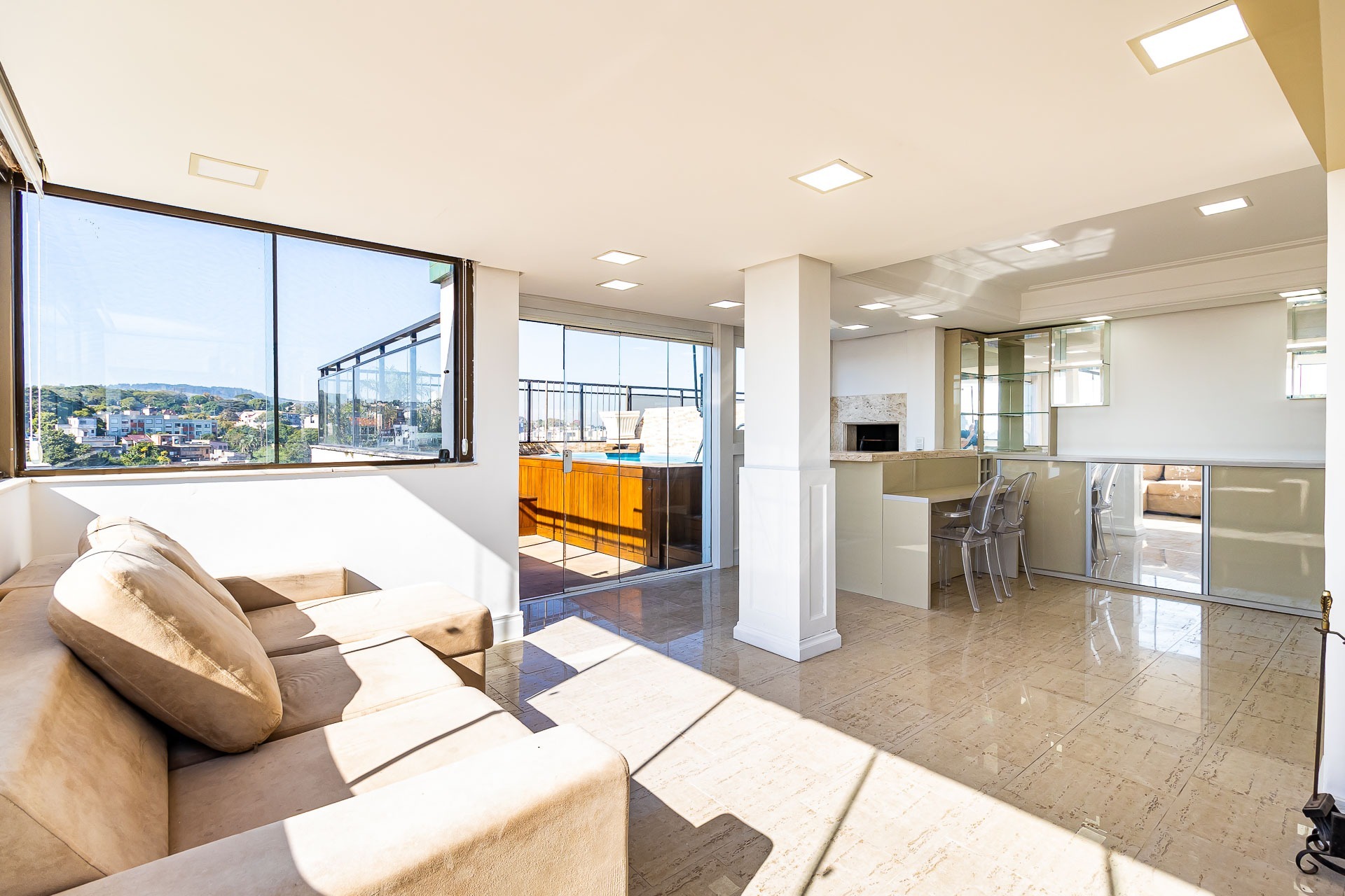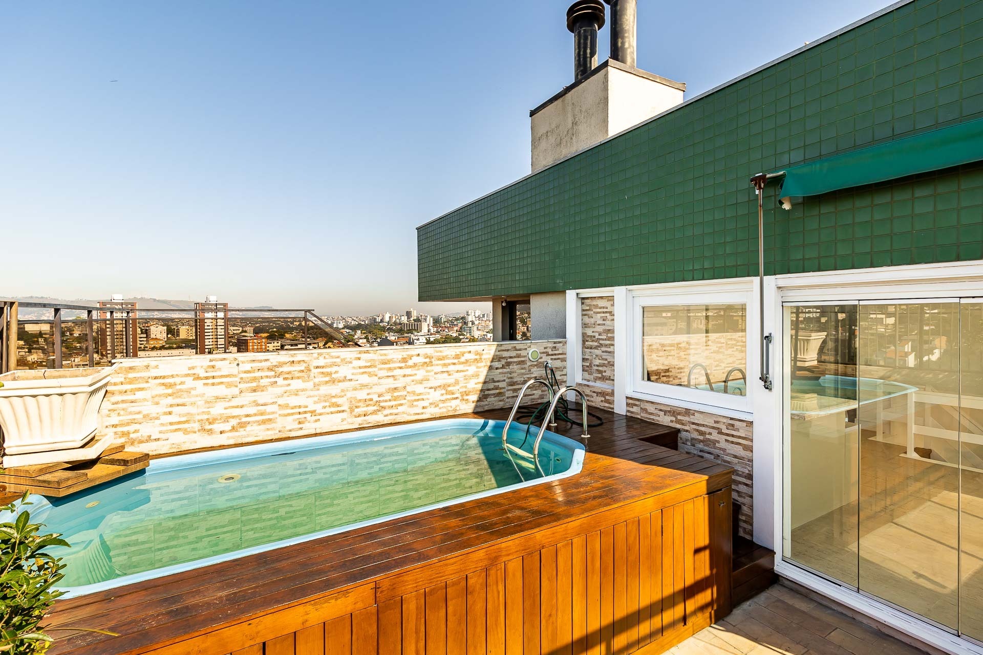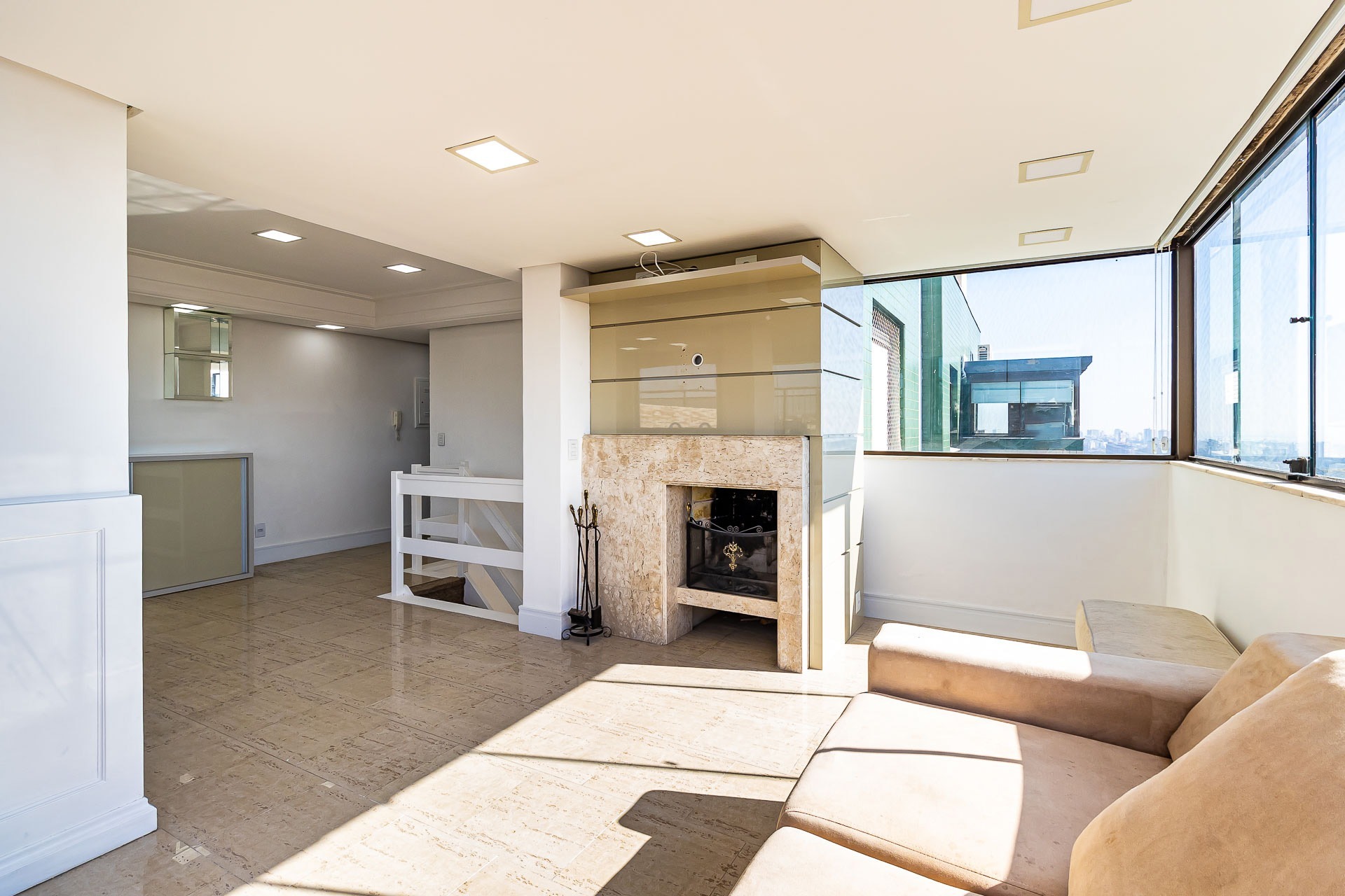 Cobertura com 4 suítes, 324m² de área privativa com 3 vagas de garagem cobertas. Imóvel com lareira detalhe que da aconchego nos dias frios. Amplo living integrado a sala de jantar na área intima são 3 suítes, um escritório, lavabo, cozinha, aérea de serviço e dependência. No segundo pavimento 1 dormitório living com churrasqueira e pátio com piscina. Vista panorâmica e em todo imóvel você terá ó...