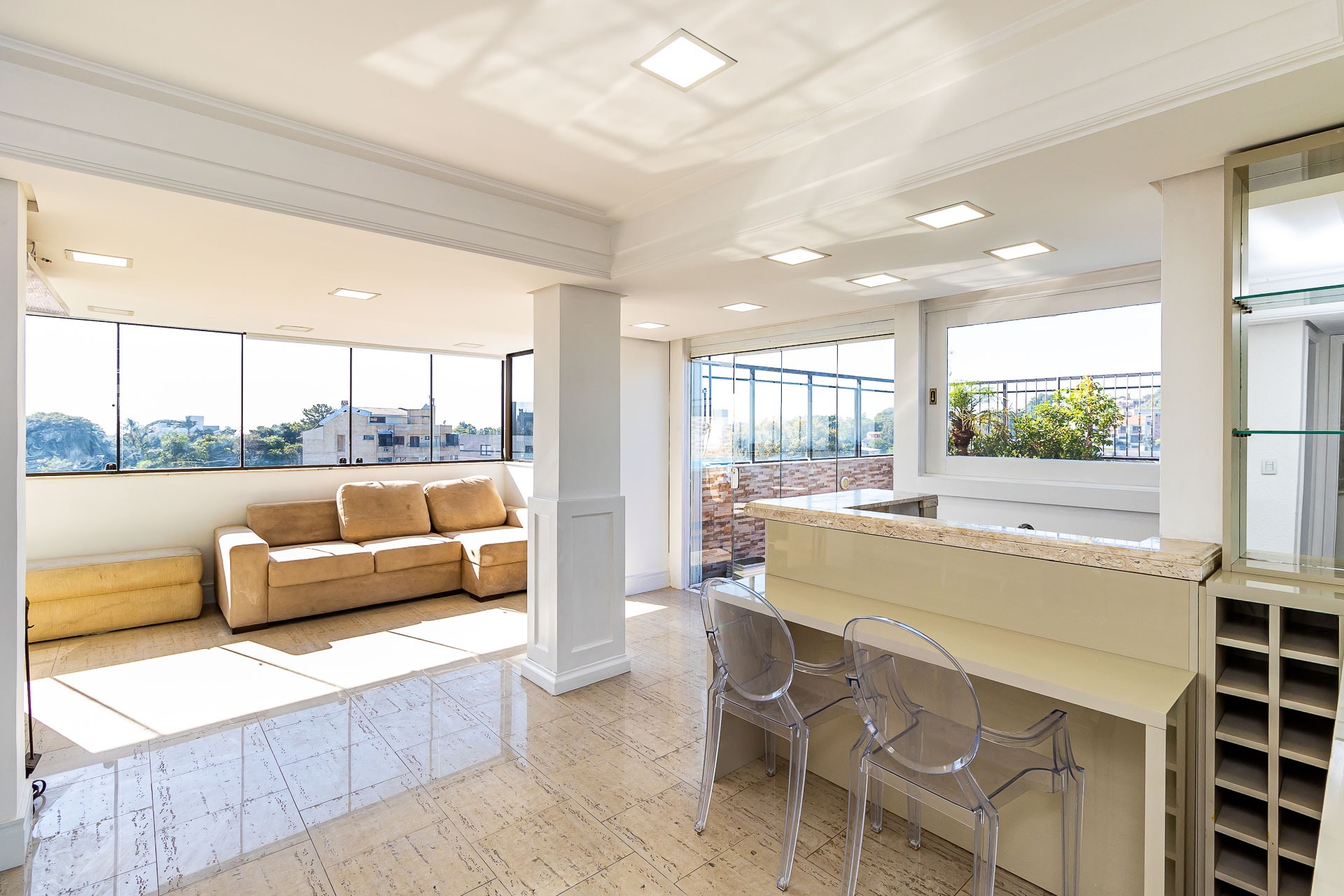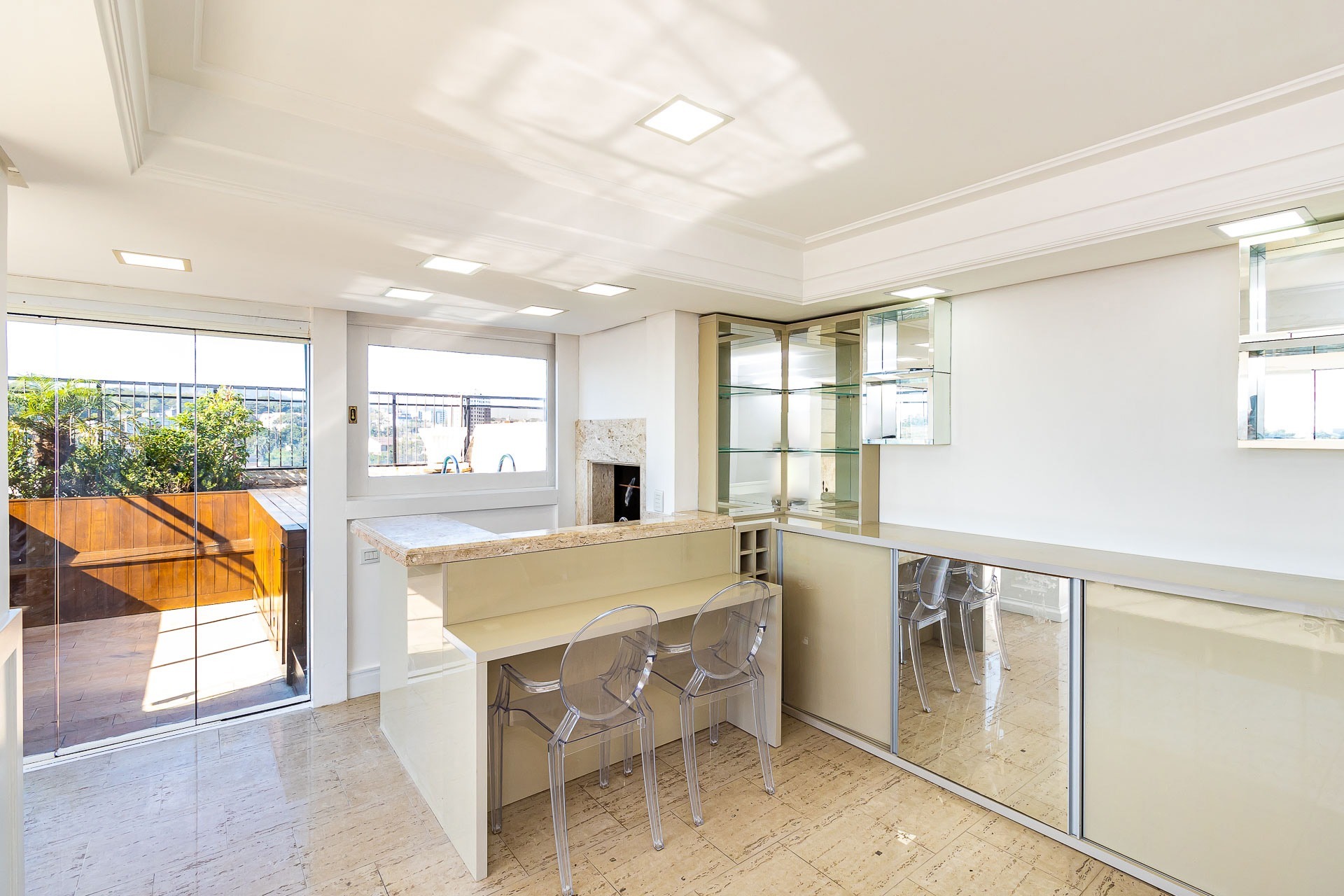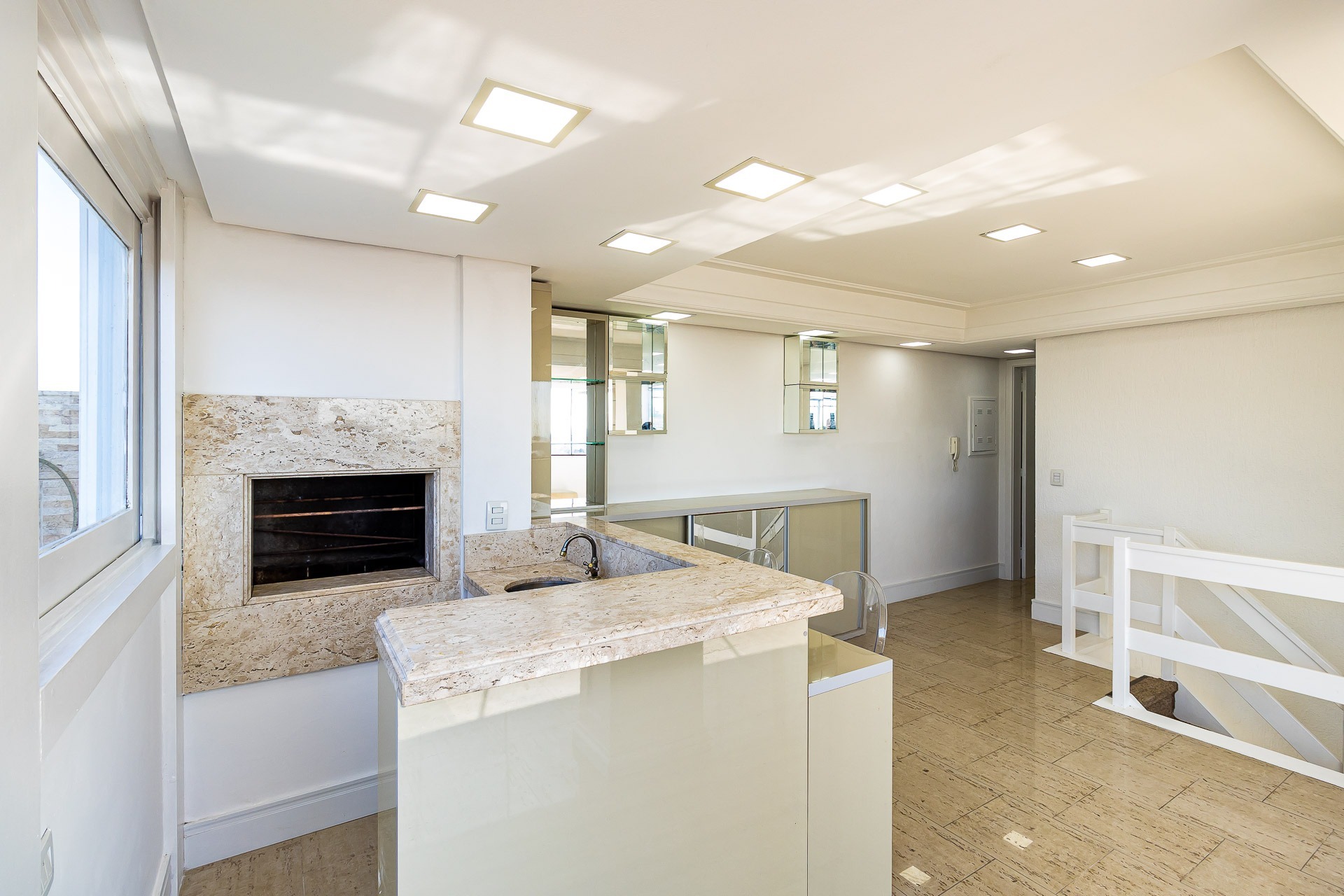 Cobertura com 4 suítes, 324m² de área privativa com 3 vagas de garagem cobertas. Imóvel com lareira detalhe que da aconchego nos dias frios. Amplo living integrado a sala de jantar na área intima são 3 suítes, um escritório, lavabo, cozinha, aérea de serviço e dependência. No segundo pavimento 1 dormitório living com churrasqueira e pátio com piscina. Vista panorâmica e em todo imóvel você terá ó...