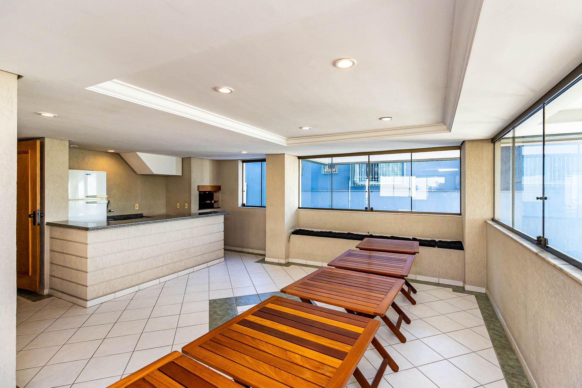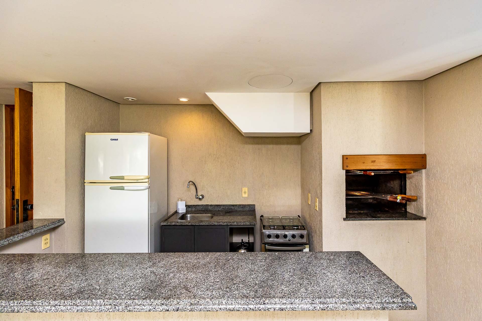 Apartamento para alugar mobiliado com 4 dormitórios, sendo 2 suítes, 179m de área privativa, living com ar condicionado, sacada fechada e ampla com churrasqueira, escrivaninha, cômodas, ventiladores de teto e cortinas, banheiro social com armários, cozinha completa com armários, fogão, geladeira, micro-ondas e coifa e área de serviço.